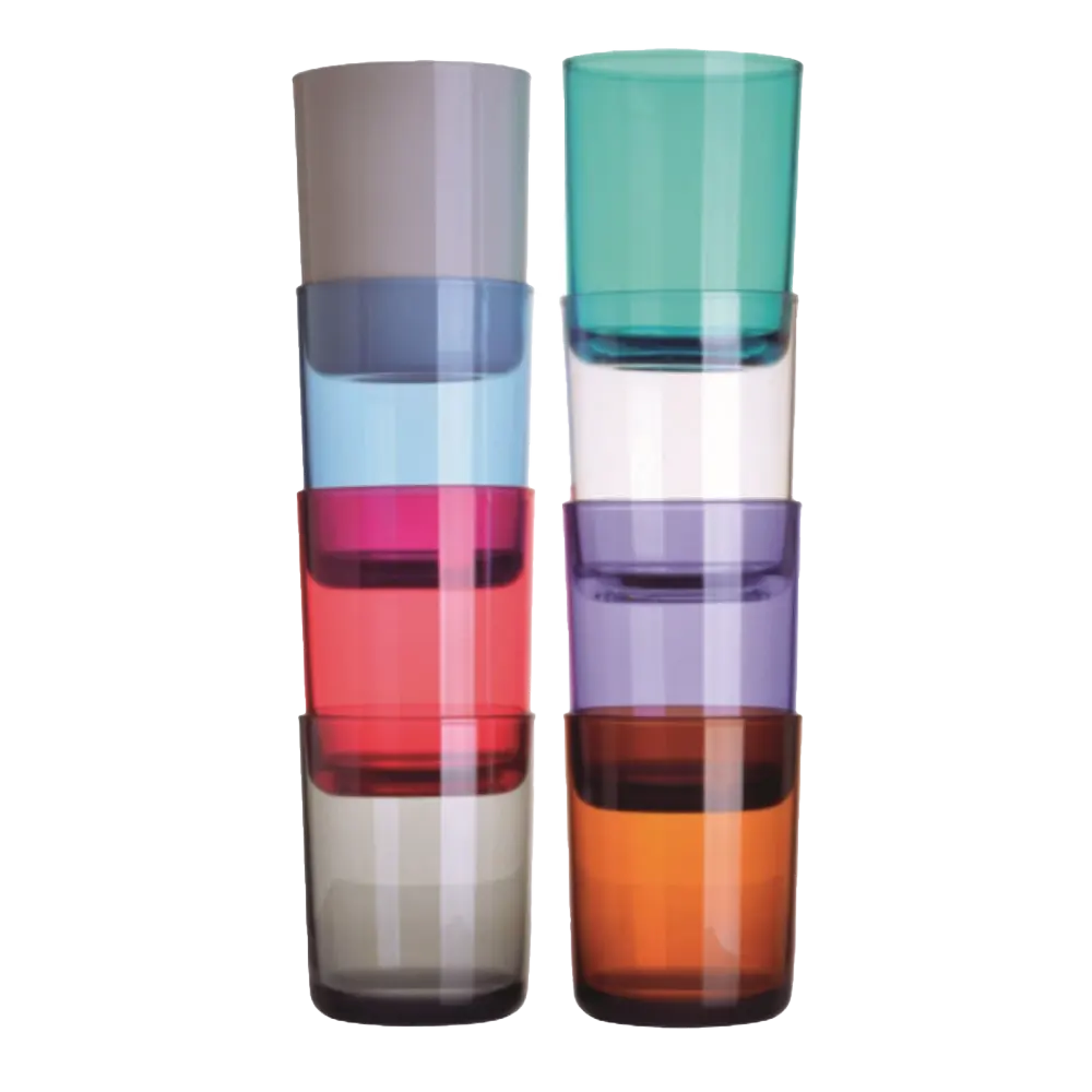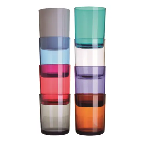 Reusable, recyclable and environmentally friendly plastic drinking glasses.