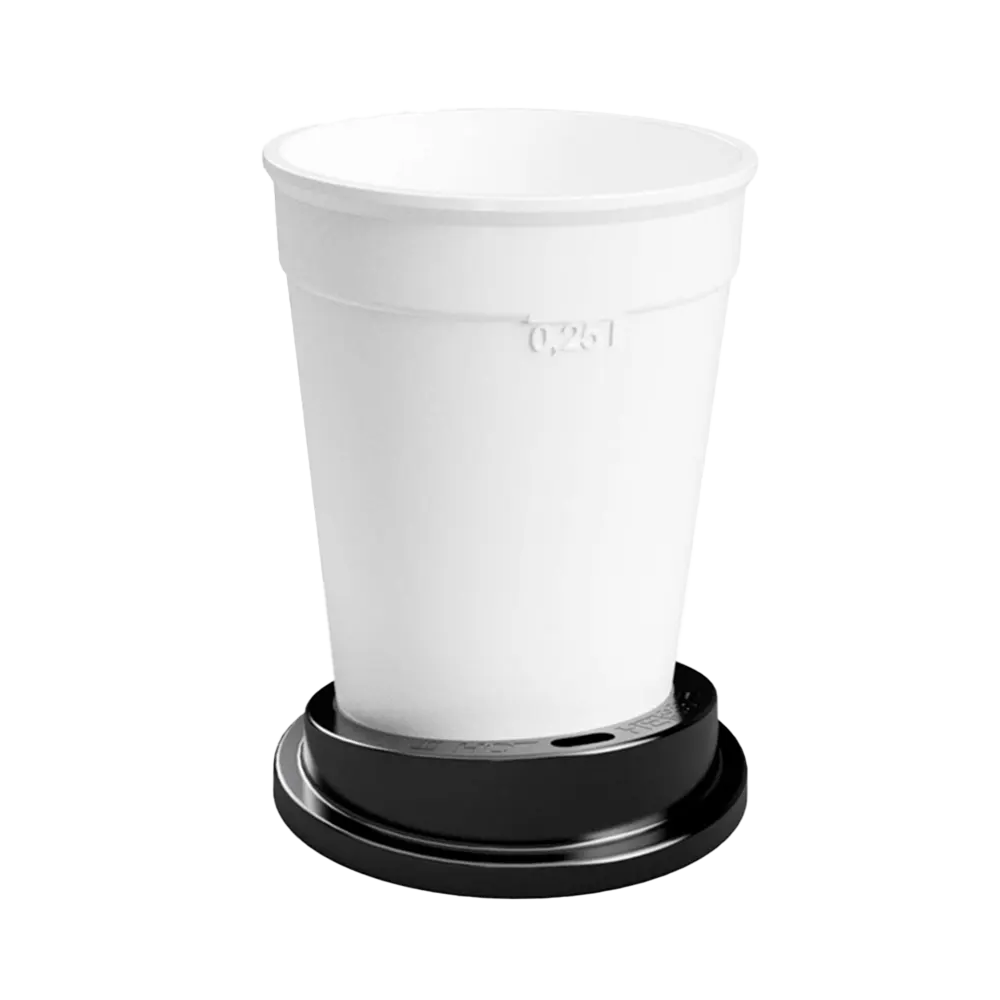 NO MORE SINGLE USE! After many years of use, the drinking glasses are not discarded in the rubbish bin. Instead, we collect and transport them to our factory in Denmark, where we grind the used material and use it to produce new, recyclable and ecofriendly products. No waste. We recycle 100% of our products, and we have created a recycling system that takes responsibility for the environment.